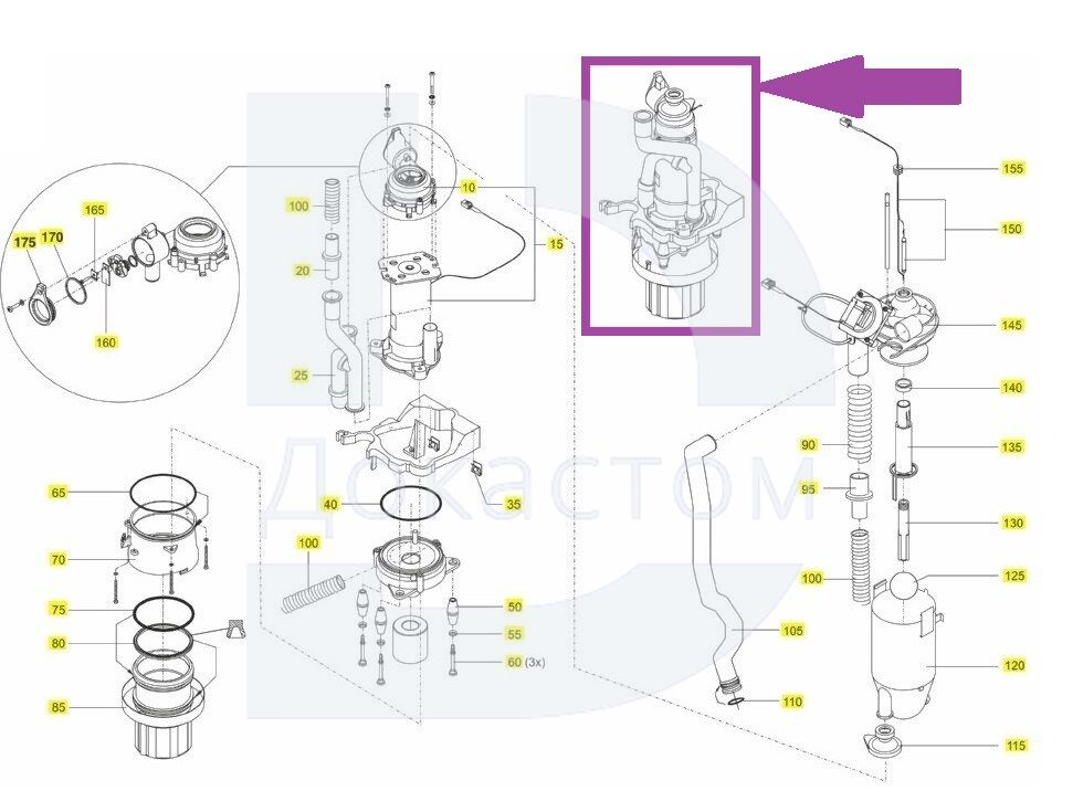Двигатель сепаратора в сборе с помпой и стаканом — ключевой компонент аспирационной системы стоматологических установок Sirona C, C+ и Intego. Обеспечивает откачку жидкости и твёрдых частиц из полости рта пациента, поддерживает чистоту рабочей зоны.