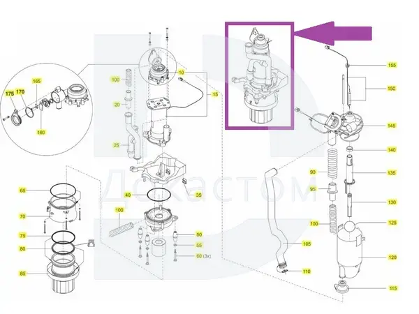 Двигатель сепаратора Sirona C, C+, Intego (в сборе с помпой и стаканом) арт 6035054