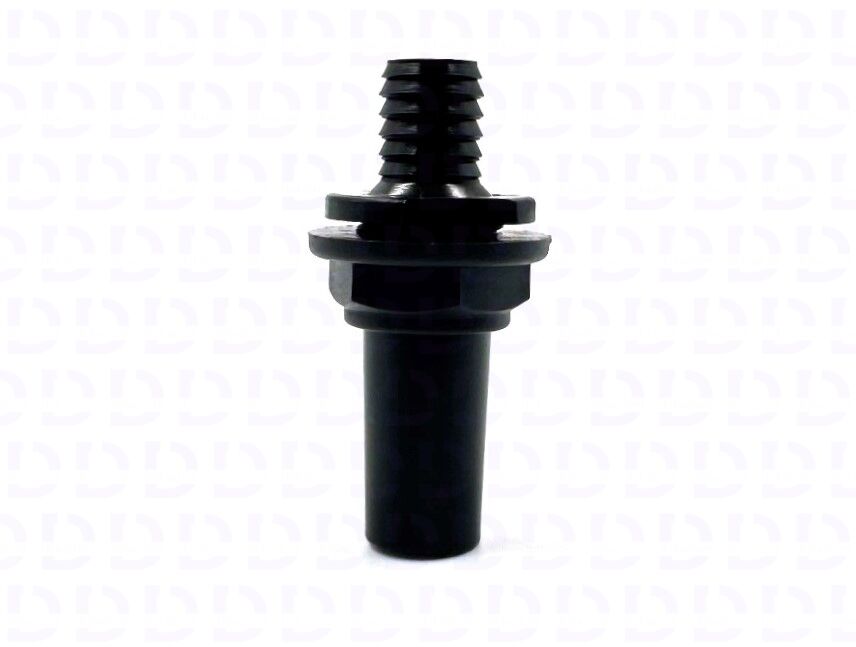Переходник размещен на боковой нижней части корпуса Mono-Jet, закреплен на корпусе с помощью гайки, предназначен для соединения шланга d=15мм (слив с канистры Mono-Jet через дренажную помпу в канализацию жидкостей и частиц).