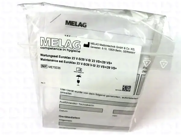 Сервисный набор для технического обслуживания — комплект оригинальных запчастей для профессионального обслуживания автоклава, обеспечивающий поддержание оборудования в рабочем состоянии и продление срока его службы. Производится компанией Melag (Германия).