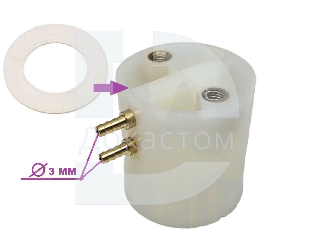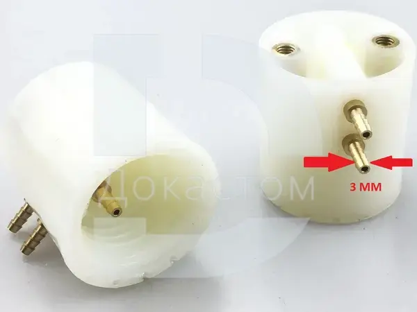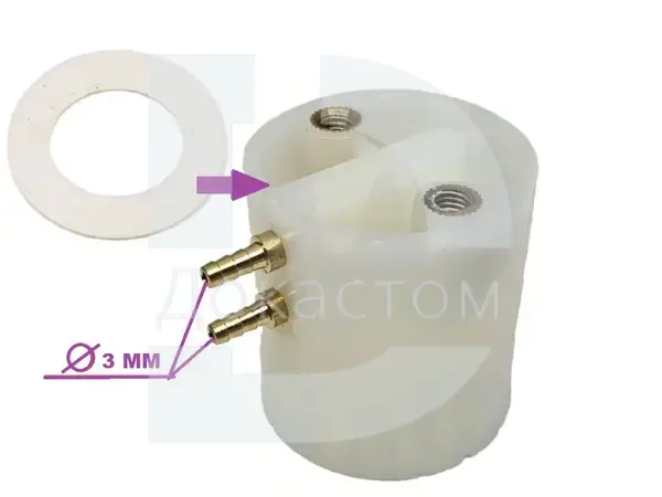 Держатель бутылки чистой воды с прокладкой, БЕЗ трубки, для стоматологической установки. Предназначена для подсоединения бутылки к системе подачи воды, выходы 3 мм.