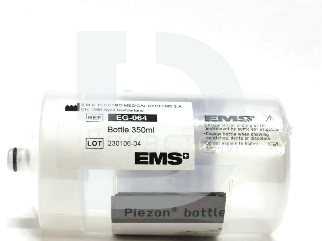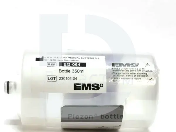 Резервуар для жидкости объёмом 350 мл — это оригинальная ёмкость, разработанная для использования с широким спектром ультразвуковых скалеров EMS и Piezon. Бутылка обеспечивает стабильную подачу воды и клинических растворов во время проведения стоматологических манипуляций.