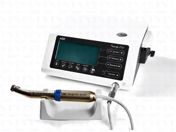 NSK Surgic Pro+ — передовая хирургическая микромоторная система от японского производителя NSK Nakanishi. Аппарат комплектуется разборным наконечником Ti‑Max X‑DSG20L с LED‑подсветкой (понижение 20:1) и оснащён функцией записи данных на USB‑носитель.