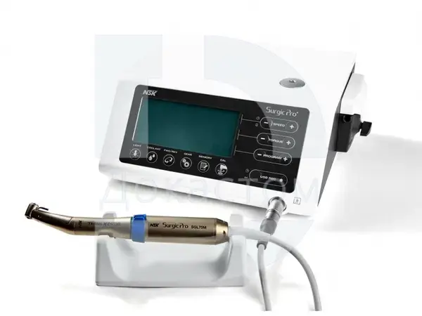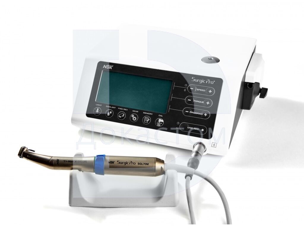 NSK Surgic Pro+ — передовая хирургическая микромоторная система от японского производителя NSK Nakanishi. Аппарат комплектуется разборным наконечником Ti‑Max X‑DSG20L с LED‑подсветкой (понижение 20:1) и оснащён функцией записи данных на USB‑носитель.