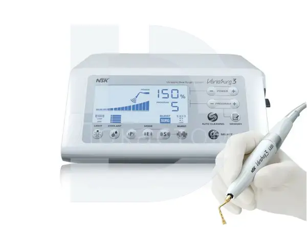 NSK VarioSurg 3 — современная ультразвуковая хирургическая система японского производства, предназначенная для высокоточных манипуляций в стоматологической хирургии. Модель без педали управления обеспечивает гибкость интеграции в рабочий процесс и может комбинироваться с другими устройствами через единую систему управления.