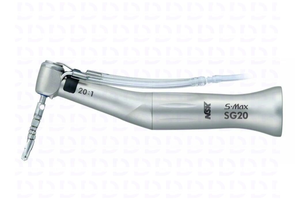 NSK Ti‑Max X‑DSG20L — высокотехнологичный угловой хирургический наконечник японского производства (NSK Nakanishi, Япония), созданный для сложных стоматологических и челюстно‑лицевых операций. Модель сочетает понижающую передачу 20:1, встроенную оптику и разборную конструкцию, обеспечивая мощность, отличную визуализацию и удобство обслуживания.