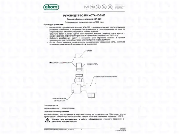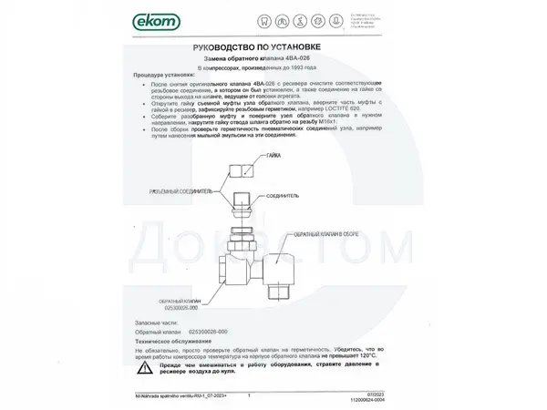 Обеспечьте безопасную и эффективную работу вашего компрессора — закажите оригинальный латунный обратный клапан EKOM уже сегодня!