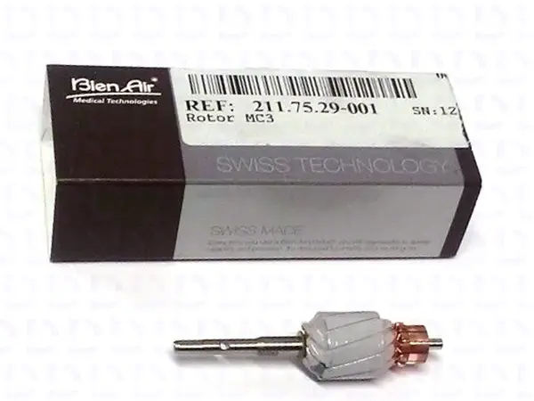 Ротор — центральный подвижный элемент микромотора Bien Air MC3 LK и MC3 LED, преобразующий электромагнитную энергию в механическое вращение. От его технического состояния зависят: мощность, стабильность оборотов, уровень шума и общий срок службы оборудования.