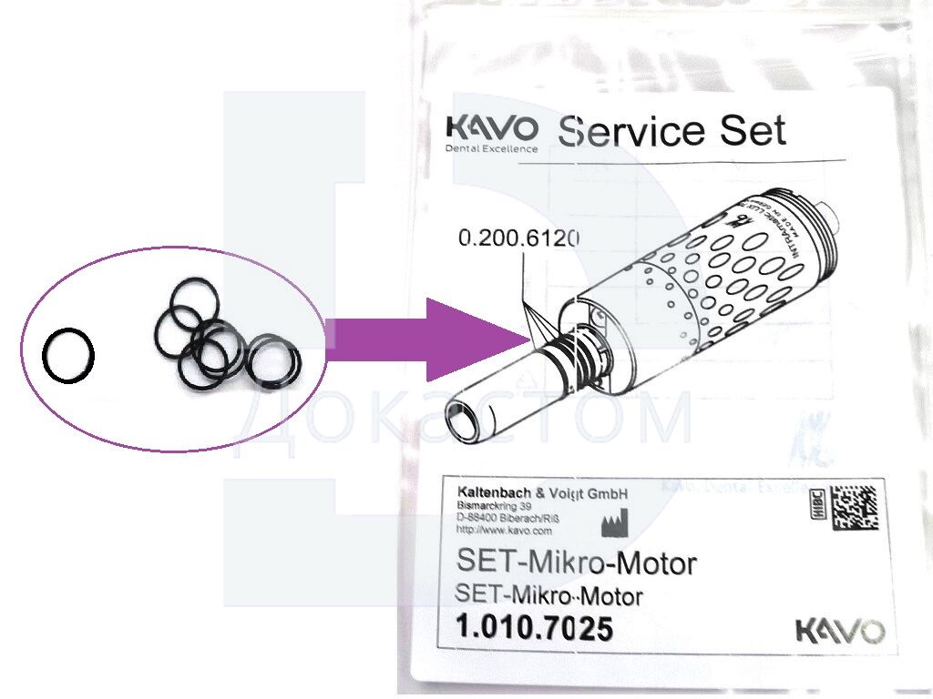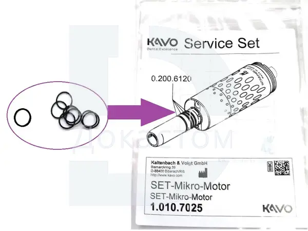 Сервисный набор — комплект оригинальных уплотнительных элементов для планового технического обслуживания микромоторов KaVo. Предназначен для восстановления герметичности соединения носика микромотора с наконечником, что критически важно для стабильной работы оборудования.