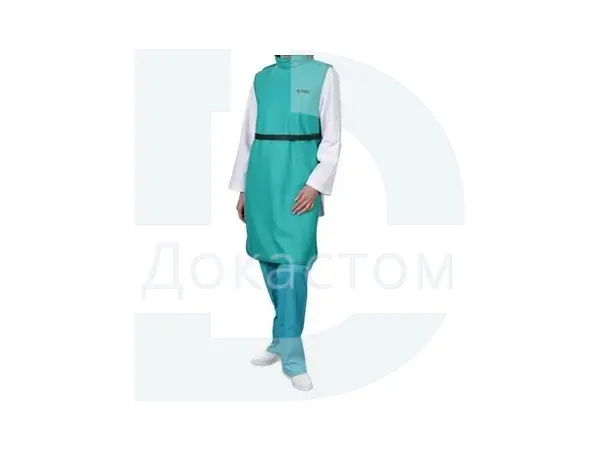 Рентгеновский ФАРТУК для врача односторонний со стойкой легкий ФРЗОл-"Р-К" (винил свинц, модель № 2, 0,25 Рb мм) -разработан специально для дентальной рентгенографии для защиты тела персонала и ассистента спереди от горла до коленей. Стойка закрывает щитовидную железу.