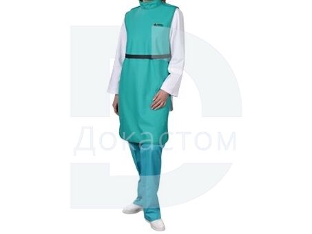 Рентгеновский ФАРТУК для врача односторонний со стойкой легкий ФРЗОл-"Р-К" (винил свинц, модель № 2, 0,25 Рb мм) -разработан специально для дентальной рентгенографии для защиты тела персонала и ассистента спереди от горла до коленей. Стойка закрывает щитовидную железу.