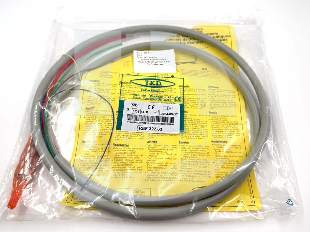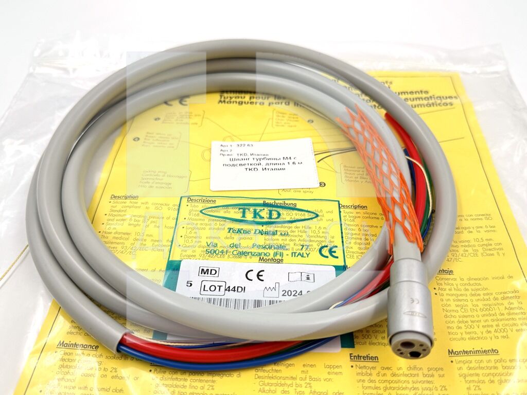 Шланг (рукав) турбинный TKD (Италия) М4 с фиброоптикой / светом для стоматологических установок с верхней и нижней подачей инструментов.