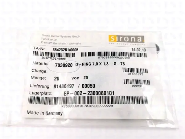 Уплотнительное кольцо на вход редуктора (7,0 X 1,8) установки Sirona арт. 7038920